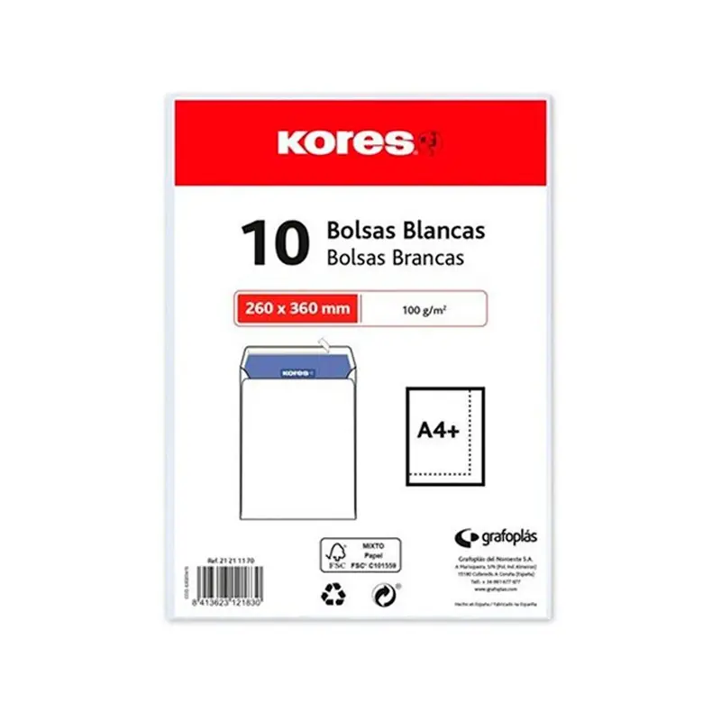 Con los sobres blancos básicos de tamaño 260x360mm, puedes enviar tus documentos de tamaño grande con eficiencia y profesionalismo.