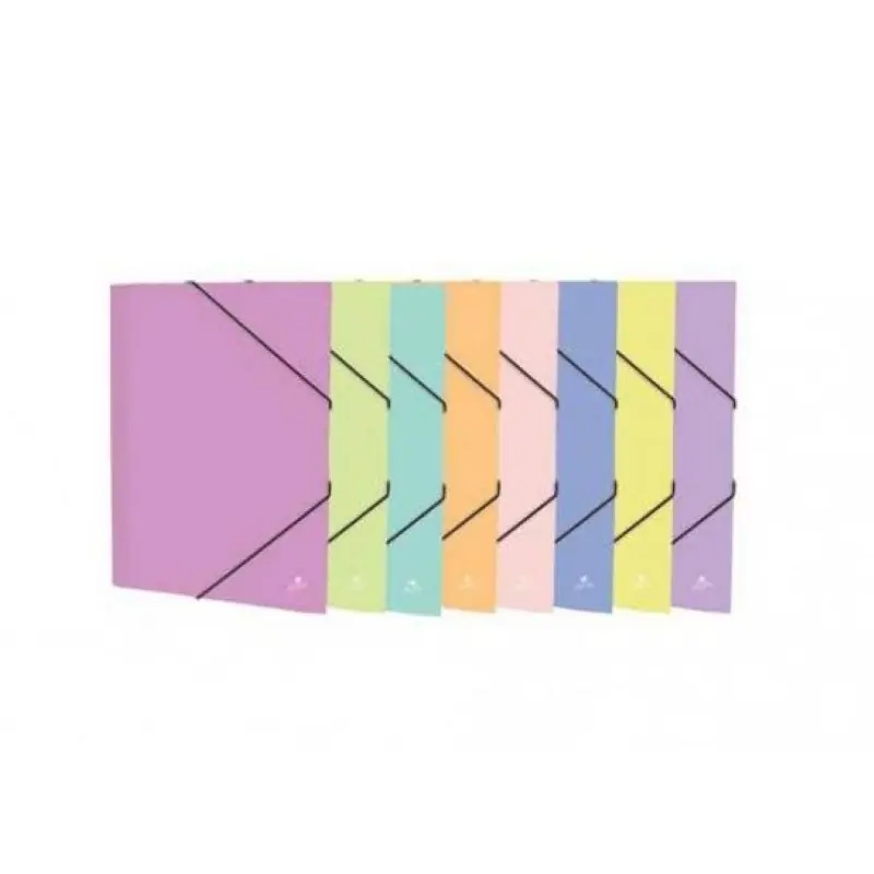 COLORES SURTIDOS. La carpeta pastel con solapas y gomas es la solución ideal para mantener tus documentos organizados con un toque de estilo y elegancia. Forrada en suaves tonos pastel, esta carpeta no solo te ayudará a mantener tus papeles en orden, sino que también añadirá un toque de originalidad a tu espacio de trabajo o estudio.