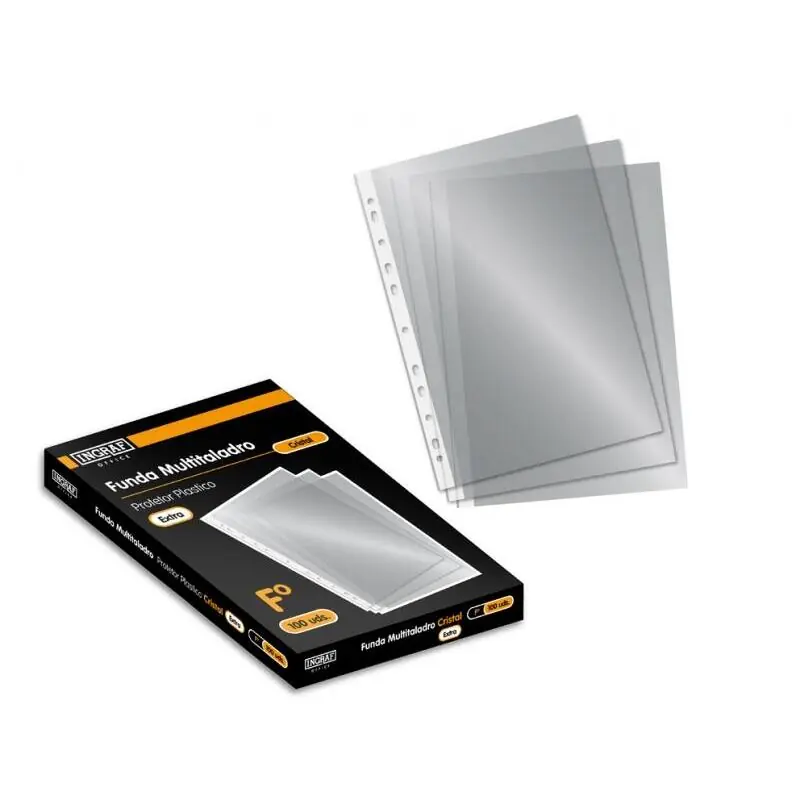 Ingraf Pack De 100 Fundas Multifuncional Cristal Extra Cj – Transparente – Ideal Para Carpetas De Anillas – Acabado