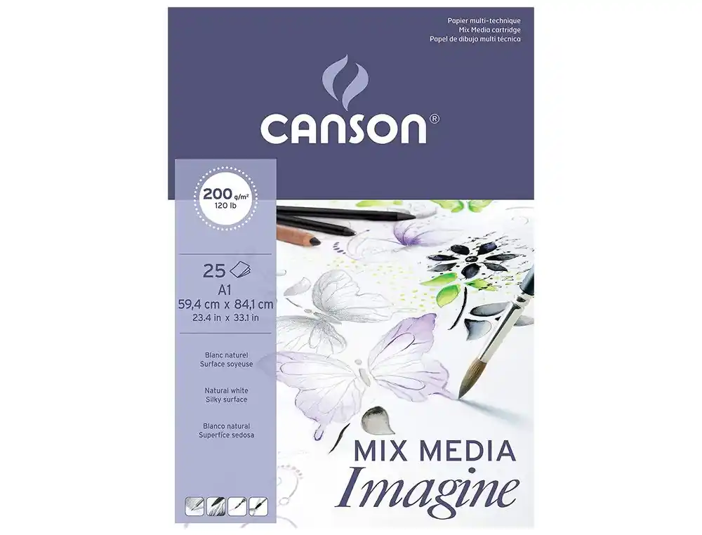El Canson Bloc Imagine de 25 hojas es el aliado perfecto para tus proyectos artísticos. Con un peso superior de 200 g/m², este papel liso en color blanco puro:
