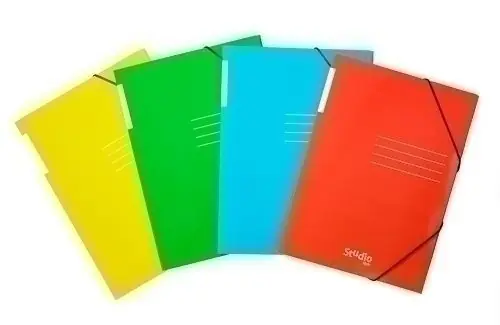 Carpeta de gomas y solapas, de la serie studio style , con etiqueta en el lomo y líneas impresas en portada, fabricadas en cartón brillo. Ideales para clasificar y ordenar tus apuntes o documentos.