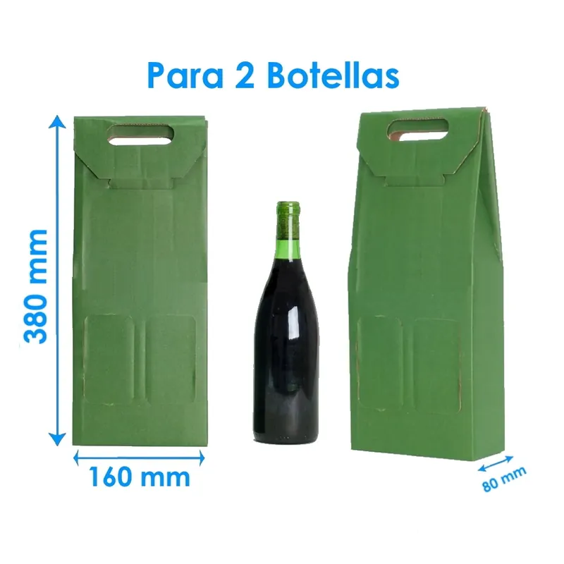 Caja Cartón PRAXTON 2 Botellas en color verde.