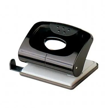 Elegante y resistente. Perforador de 2 punzones de 5 mm. Ã. Metálico y pintado. Regleta para regular el perforado en A4, A5 y A6. Perfora hasta 20 hojas.