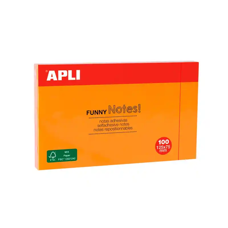 ¡Prepárate para un estallido de color y alegría con las notas adhesivas Apli en naranja fluor de 125x75mm! Con 100 hojas por bloc, estas notas son la herramienta perfecta para dar vida a tus ideas más brillantes y hacer que tu día brille con energía positiva.