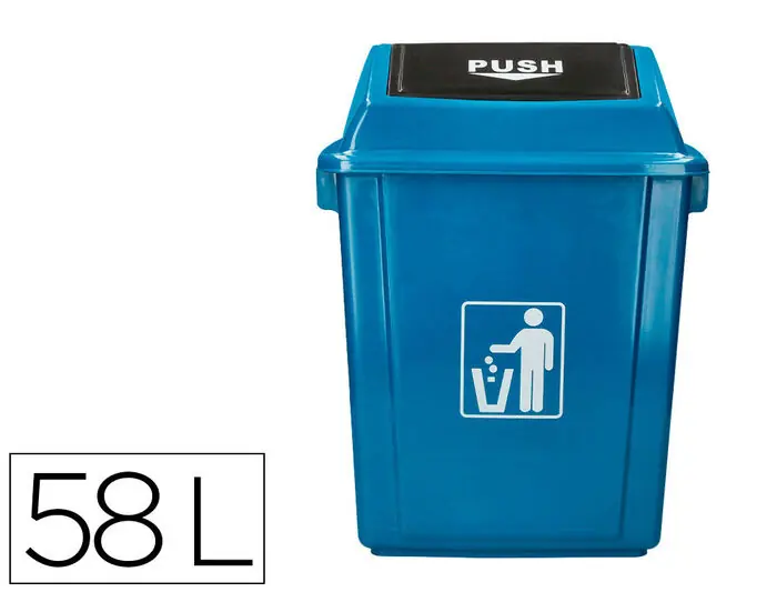 Fabricado en plástico resistente. Tapa de balancín, con 2 asas para facilitar el transporte. Capacidad 58 litros. Color azul. Medidas: 470x330x760 mm.