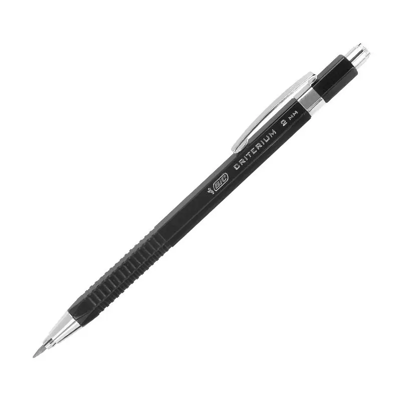 Además, este portaminas cuenta con una mina de grafito de dureza HB y trazo de 2mm que le permiten producir líneas precisas y sin derrames, logrando los mejores resultados. El 0,5 y el 0,7 mm contienen 3 minas HB, mientras que el de 2 mm posee una mina y un afilador especial en el pulsador.