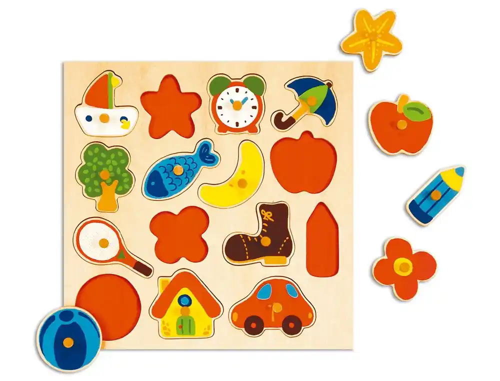 - Incluye 15 piezas: Hechas de madera, con ilustraciones coloridas y vistosas.