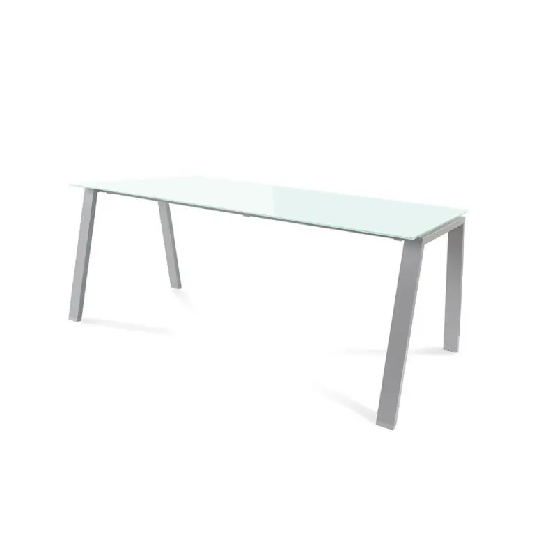 Mesa individual que combina funcionalidad con elegancia. Mesa recta con estructura de patas inclinadas, fabricada en tubo de acero. Opción de tablero de melamina de 25mm. de grosor canteado en PVC o sobre de cristal templado de alta resistencia. Mesa ideal para oficinas individuales como para grandes espacios de coworking. Altura de 74cm., con niveladores para levantar la mesa 2cm. más.