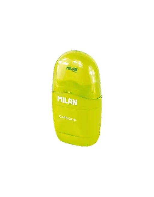 Combinación de goma y sacapuntas. El sacapuntas tiene una cuchilla de acero al carbono afilada y resistente, ideal para todo tipo de lápices. Artículo con cuchilla de seguridad. Este sistema evita que se pueda separar la hoja del cuerpo del sacapuntas, siendo óptimo para uso escolar. Diseñado en España por el propio departamento de I+D. Colores surtidos disponibles: azul, lila, rosa y verde.