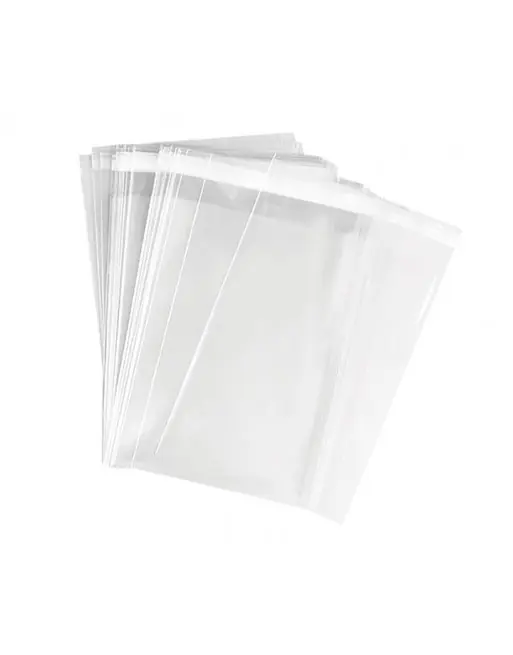 Bolsas de polipropileno biorientado con solapa adhesiva de 4 cm. Aptas para uso alimentario.