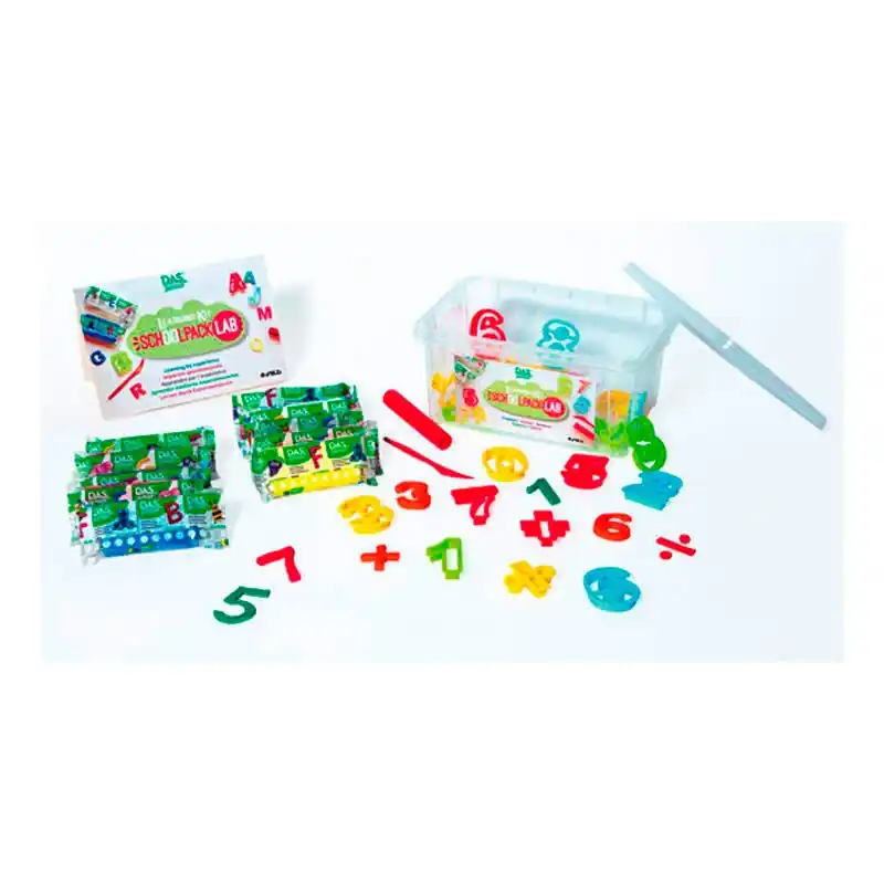 Schoolpack Lab: desarrollado conjuntamente con profesores para explorar la creatividad como herramienta para jugar y aprender. kits completos con todo lo necesario para aprender el alfabeto y los números.