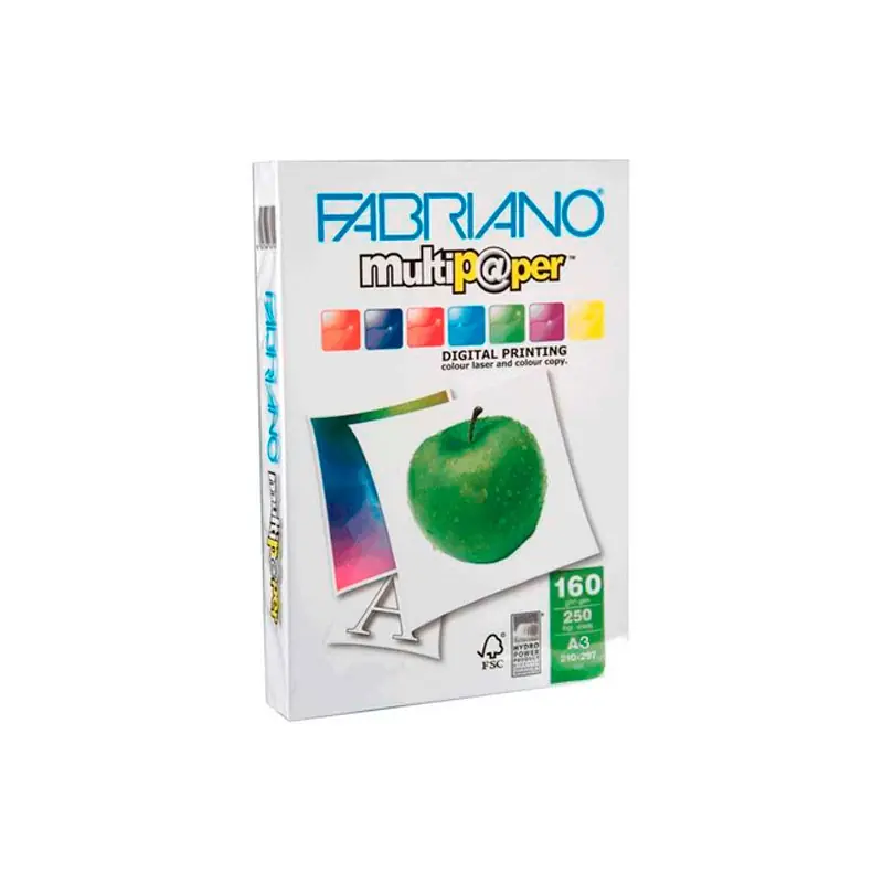 Empaquetado Conveniente: Cada paquete de papel A3 de 160 gramos contiene 250 hojas, proporcionando un suministro adecuado para tus necesidades de impresión. El empaque transparente con el logotipo de FABRIANO impreso garantiza la protección y la identificación fácil del producto.