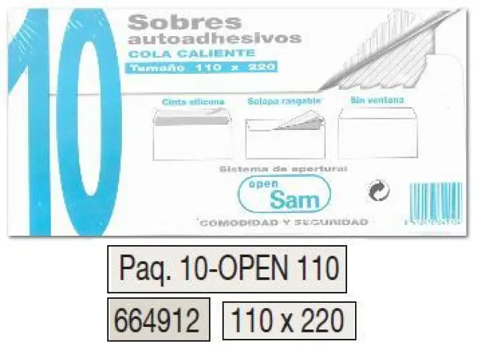 Novedad P/10 SOBRES 110X220 OPEN 110 BLANCO AUTOADHESIVO