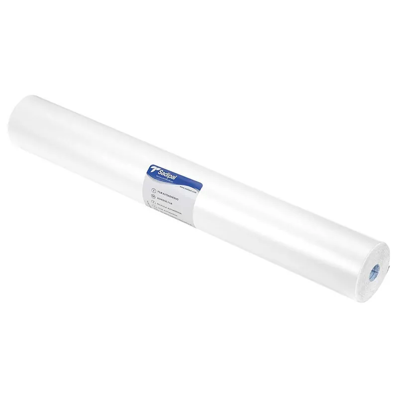 Plástico Adhesivo SADIPAL en color BLANCO. Producto presentado en un rollo, retractilado indiviualmente, de 0,5 metros de ancho x 15 metros de largo.