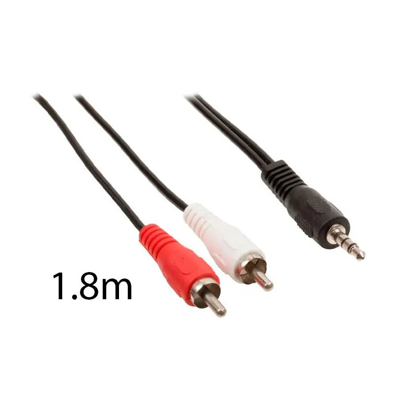 Experimenta un sonido de alta calidad con nuestro cable de audio jack de 3,5mm a 2 RCA de 1,8 metros. Perfecto para sistemas de sonido doméstico.