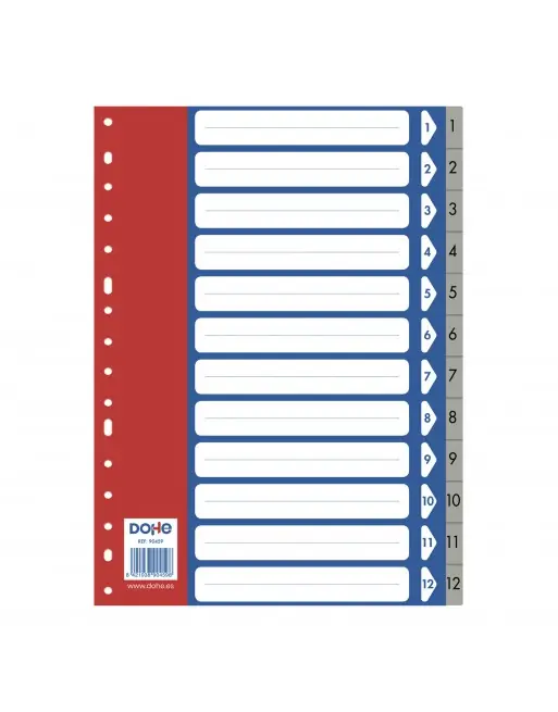 Oferta DOHE ÍNDICES POLIPROPILENO 1 AL 12 – GRIS 225 X 300 FORMATO A4 – 90459