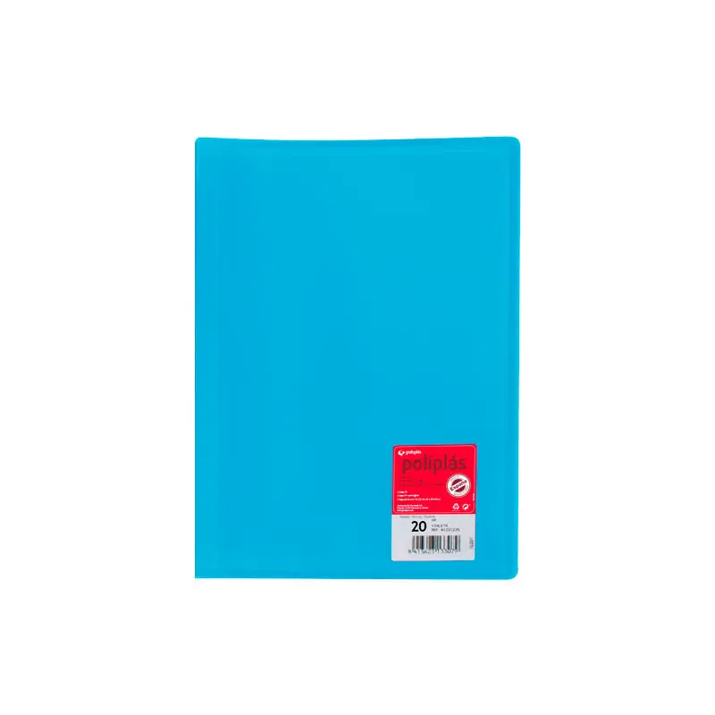 Diseñada para la organización y almacenamiento de documentos, esta carpeta A4 de 20 fundas de poliplás translúcido es la solución perfecta para trabajar de manera eficiente. Fabricada con tapas flexibles de polipropileno y fundas interiores soldadas al lomo, ofrece un diseño resistente y duradero para su uso diario.