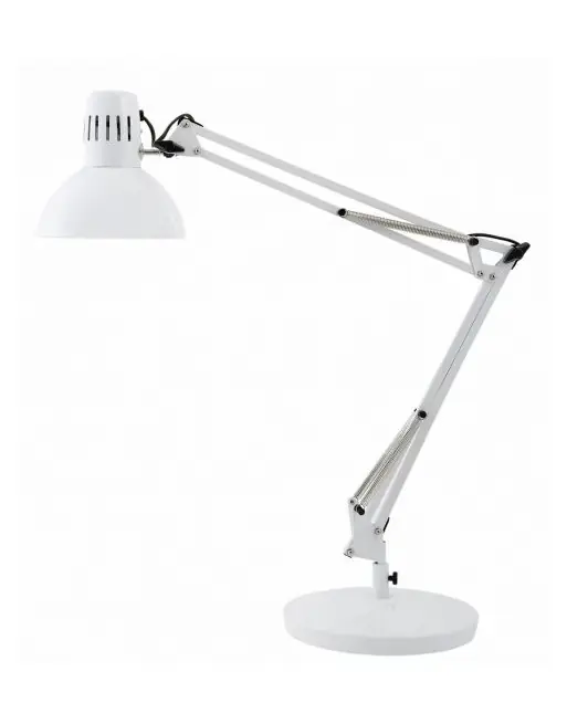 Lámpara LED fabricada en ABS y metal. Altura regulable gracias a su brazo articulado doble que permite la máxima amplitud. Se suministra con base y mordaza. LED 7W Flujo luminoso de 600 lumen. Posibilidad de utilizar bombillas LED o FLUO. No incluye bombilla.