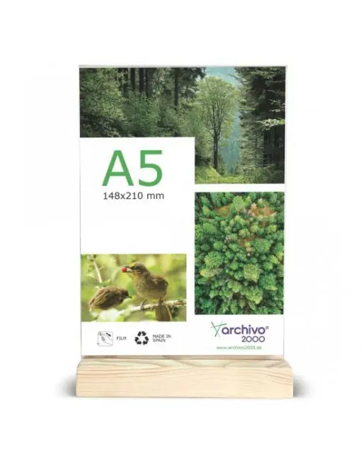 Oferta Flash ARCHIVO2000 EXPOSITOR DE SOBREMESA DOBLE CARA CON BASE DE MADERA A5 VERTICAL ID 15905M1 TP