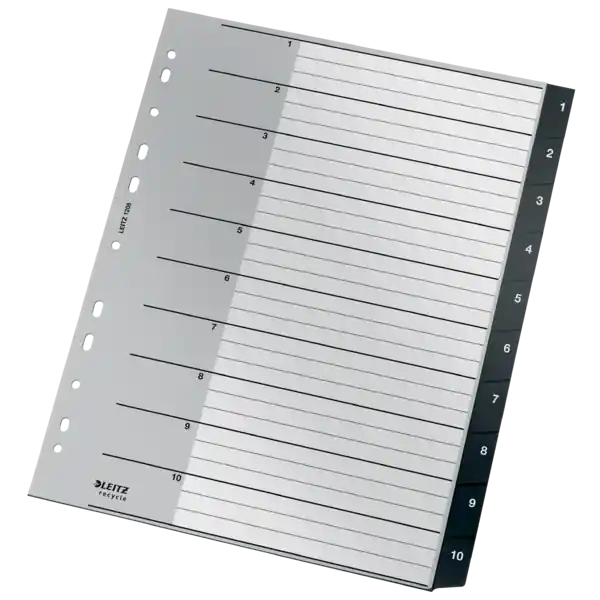 Oferta Flash Índice multitaladro Leitz Recycle. DIN A4 maxi. Pestañas 1-10. PP reciclado, climáticamente neutro y 100% reciclable, negro