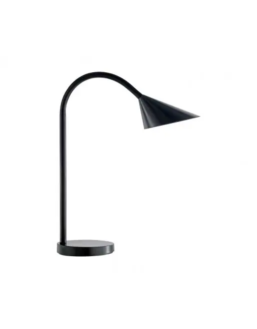 Lámpara de escritorio con iluminación LED. Equipada con un LED integrado con alta calidad de iluminación con una duración aproximada de 20.000 horas. Diseño atemporal, simple y moderno. La forma del cabezal proporciona mayor difusión en la superficie de trabajo. Equipada con un brazo flexible metálico de 23 cm para que sea fácilmente ajustable en todas las direcciones. Cabezal y base fabricado en plástico. Potencia nominal de 4W. 500 lúmenes y una temperatura de color de 3000 Kelvins.