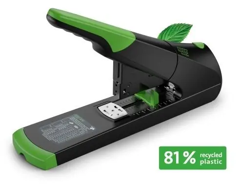 Grapadora de gruesos sostenible con cuerpo metálico, recubierto de plástico, sistema antibloqueo ABS (evita atascos), cargador de apertura frontal con doble guÃa, sufridera rotativa para grapado en paralelo y en bypass, y profundidad de entrada de papel hasta 75 mm. Un complemento de oficina que grapa hasta 140 hojas de 80 g/m². Apta para grapas: 23/6 a 23/17 Súper.