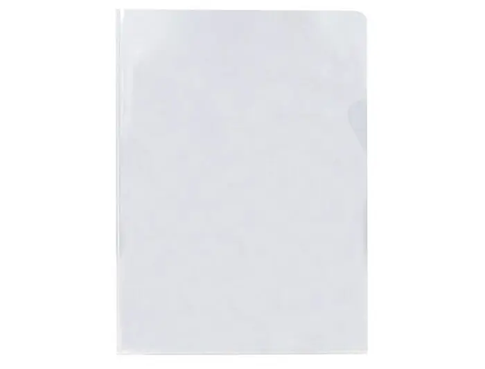 Fabricada en PVC cristal transparente. Con uñero lateral para un acceso más fácil a los documentos. Con abertura superior y lateral. Incolora. Tamaño folio. 180 micras.