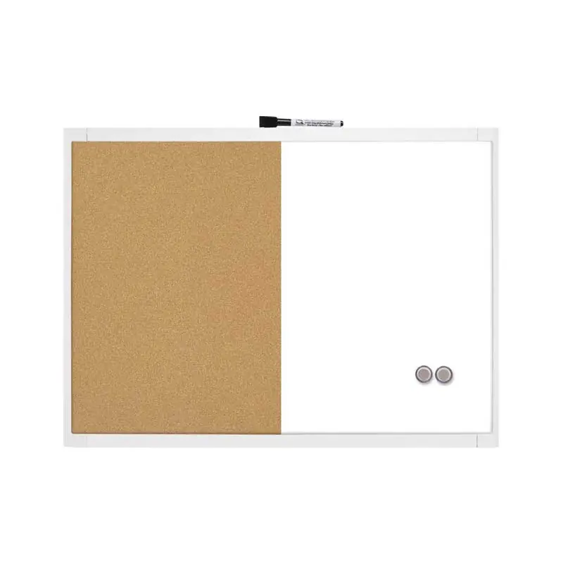 El tablero NoBo Hogar ofrece una superficie magnética para anotar tus notas con rotulador borrable en seco. Incluye 2 imanes, rotulador con borrador y elementos de fijación para mantener todo en su lugar. El marco resistente de plástico en color blanco le da un toque moderno y sofisticado a la decoración de tu hogar.