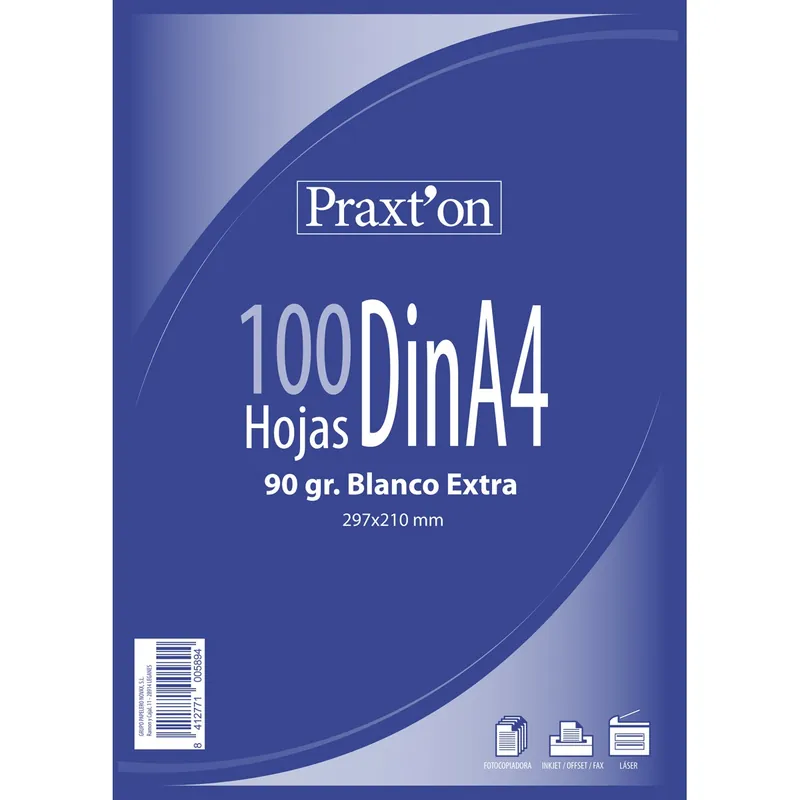 Papel Blanco Multifunción PRAXTON 90 gr. Din-A4. El paquete contiene 100 hojas en su interior.
