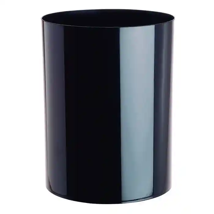 Papelera fabricada en polipropileno de alto brillo, poliestireno de alto impacto y calidad, y polietileno de baja densidad. Resistentes a golpes y rayaduras. Capacidad: 17 litros. Color negro. Dimensiones: 26 x 33,5 cm.