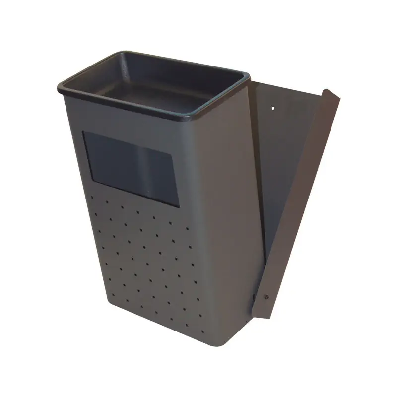 ¡Aprovecha la Papelera SIE de Pared Perforada Resistente para Exteriores! Esta papelera está fabricada en chapa de 0,8 mm de espesor y pintada en epoxi texturizado con 40/80 micras de espesor. Esta característica le da una resistencia mayor a la lluvia y el viento, ideal para colocar en exteriores. Cuenta con un cenicero y una boca delantera, además de un mecanismo de descarga abatible. Esta papelera tiene una capacidad de 30 litros y unas medidas de 50 x 32 x 19 cm. El color de la papelera es negro. Incluye también un recogecolillas en epoxy negro y un kit de fijación a la pared. ¡No esperes más para adquirir tu Papelera SIE de Pared Perforada Resistente para Exteriores!