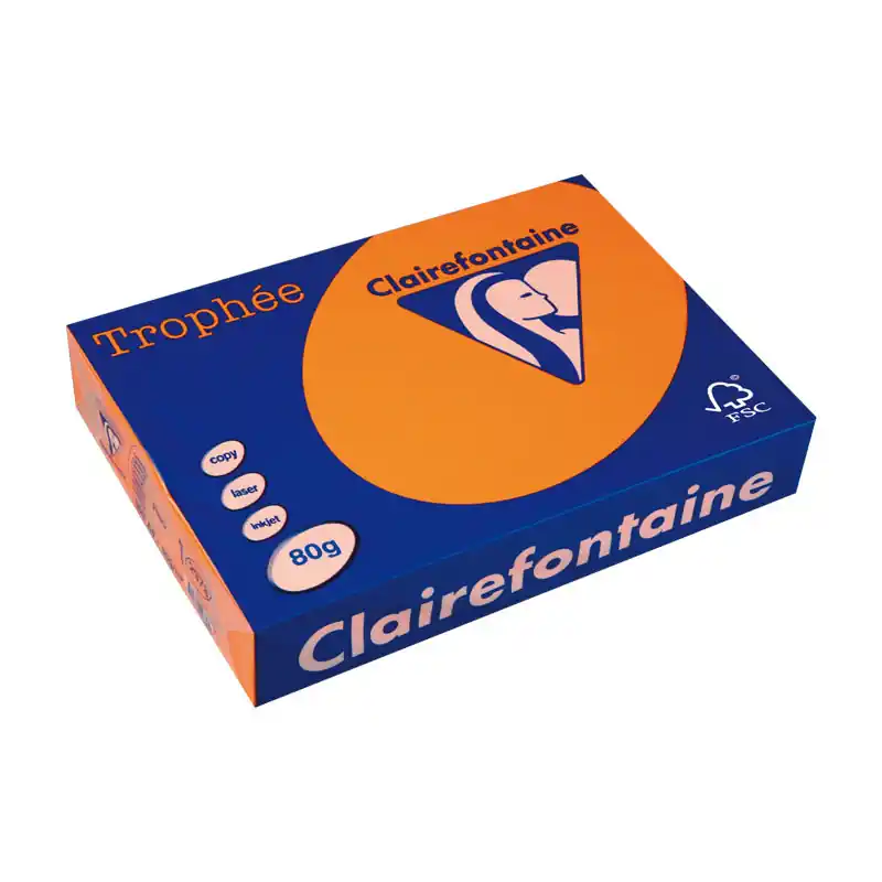 PAQUETE 500h PAPEL TROPHÉE CLAIREFONTAINE A4 FLUORESCENTE – Naranja flúor Oferta Especial