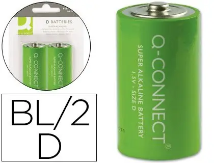 Pila Q-Connect Alcalina D -Blister con 2 Pilas Económico