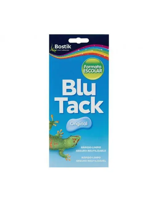 Masilla adhesiva moldeable y reutilizable recomendada para la fijación de todo tipo de objetos. Muy útil para sujetar pósters, fotos, adornos, elementos decorativos, globos, etc. Masilla limpia y fácil de quitar, sustituye chinchetas y cintas adhesivas. Indicado para uso escolar por su gran formato: 90gr.