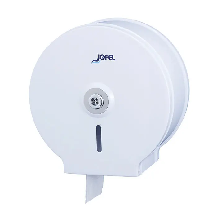 Portarrollos de papel higiénico industrial fabricado en acero. Cierre con llave. Diámetro de 18/45/55. Medidas (HxAxP) 22 x 21,7 x 12,5 cm.