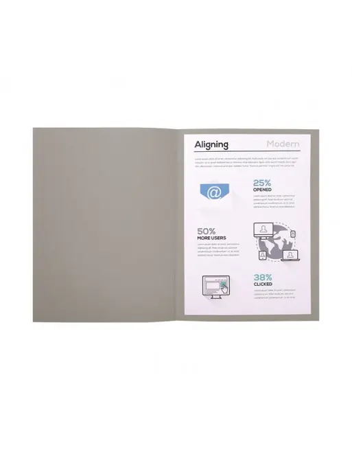 Subcarpeta fabricada en cartulina 100% reciclada de 220 g. Dimensiones: 24 x 32 cm. Aptas para formatos A4 y Folio.