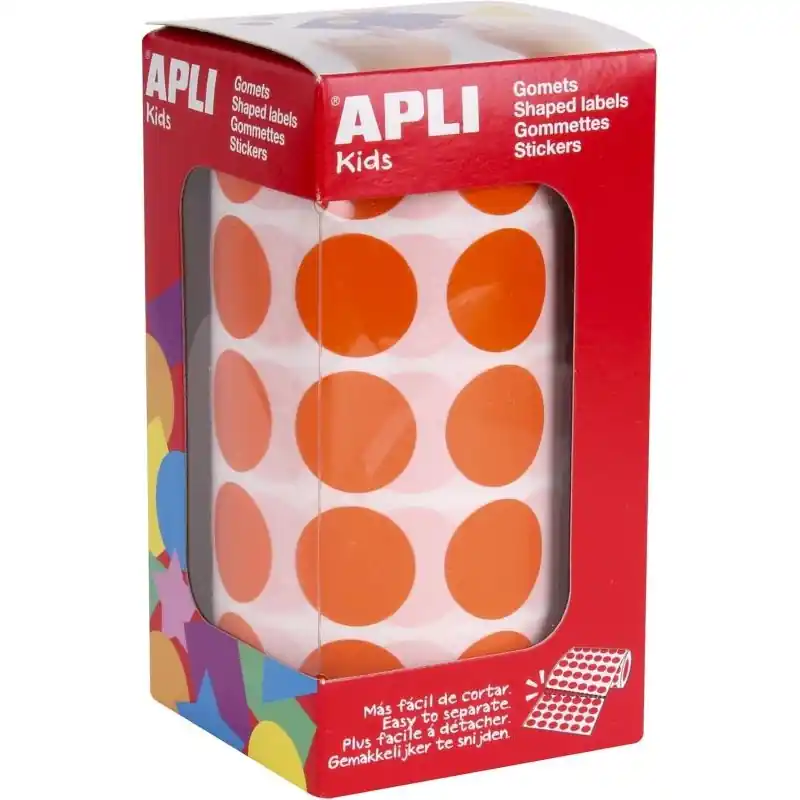 Añade un toque vibrante y creativo a tus proyectos con el rollo de gomets Apli redondos en color naranja.