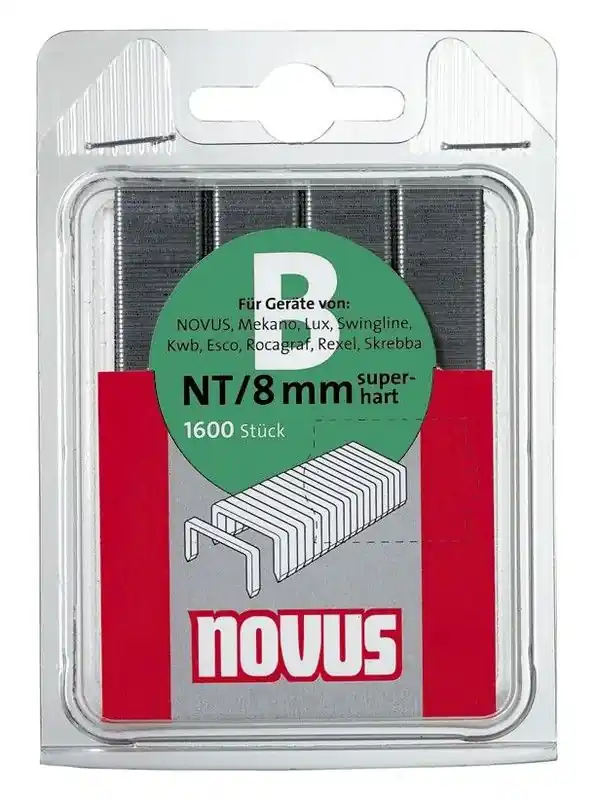 Grapas Novus Para clavadora 53 Color cromado Tamaño 8 mm Paquete de 2000 unidades