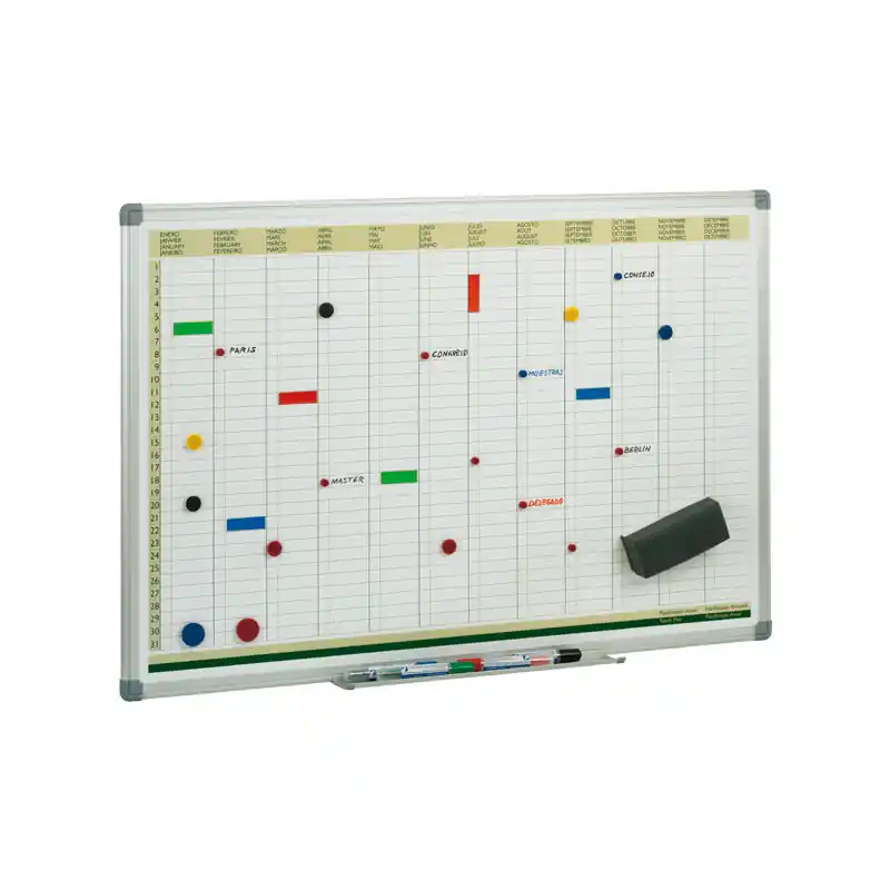 ¿Estás buscando una herramienta para planificar tu año de forma práctica y sencilla? El Planificador Anual FAIBO es justo lo que necesitas. Está diseñado para que puedas trabajar con imanes o con rotuladores especiales para pizarra blanca. Además, cuenta con un marco de aluminio, cantoneras decorativas de plástico gris y un cajetín de aluminio.