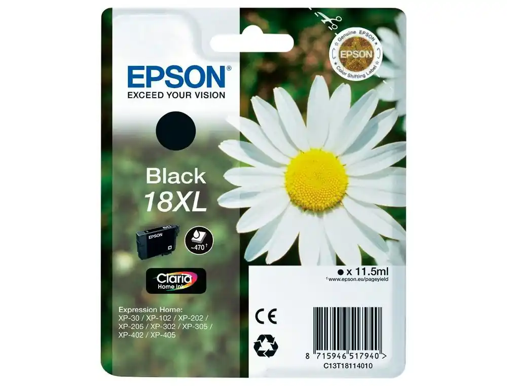 Promoción EPSON cartucho inyección negro 11,5ml 470 págs 18XL XP-30/102/202/205/302/305/402/405 C13T18114012