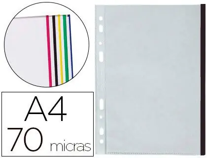 Promoción Funda multitaladro q-connect din a4 70 mc pp cristal con borde negro bolsa de 10 uds