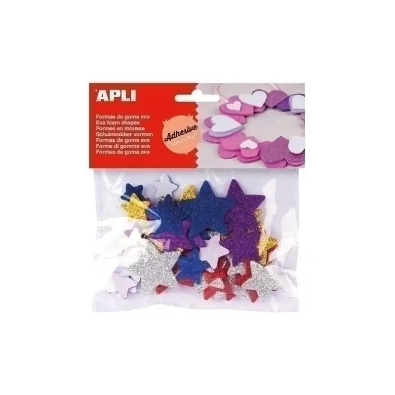 Formas de estrella de goma EVA adhesiva con acabado purpurina