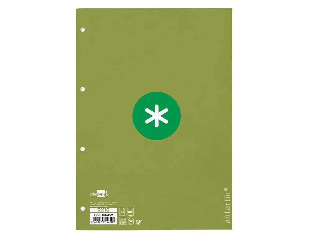 Recambio liderpapel a4 antartik 80 hojas 90g/m2 cuadro 5mm 4 taladros 1 banda con marco color verde Novedad