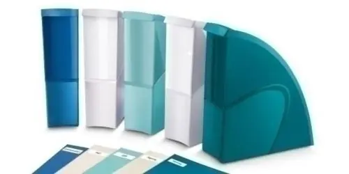 Revistero dinámico, versátil y elegante, realizado en poliestireno reciclable, que combina acabados mate y brillo. Su borde de 2 cm facilita su agarre, el traslado y el almacenamiento de documentos, de 24 x 32 cm, tanto en vertical como en horizontal. Capacidad para 700 hojas de 80 g/m². 100% reciclable. Medidas: 310 x 270 x 85 mm.