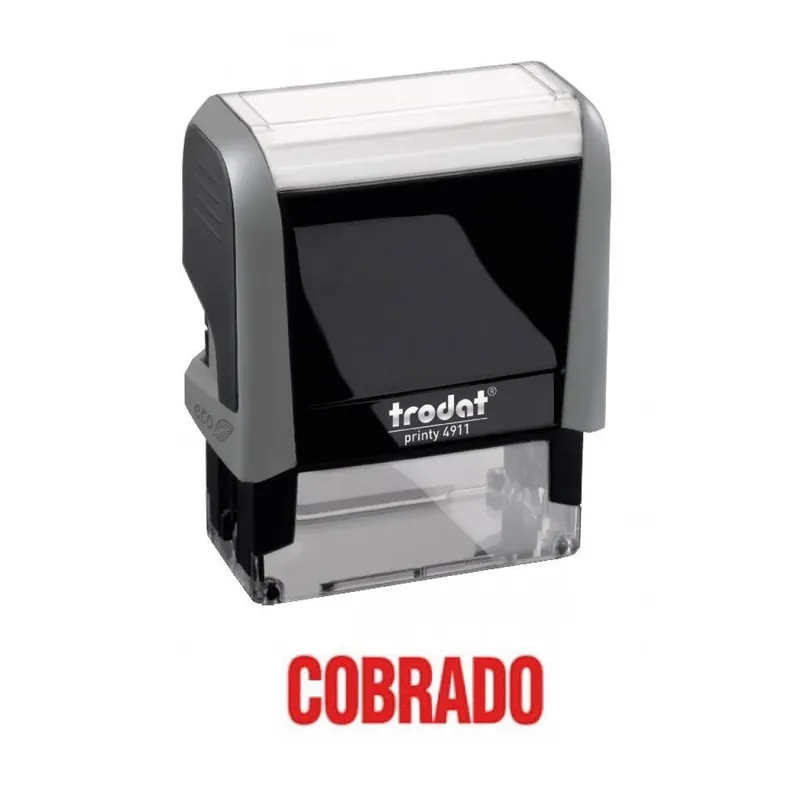 Sello Automático TRODAT Printy 4911. Modelo F-5 que imprime la formula comercial PAGADO.