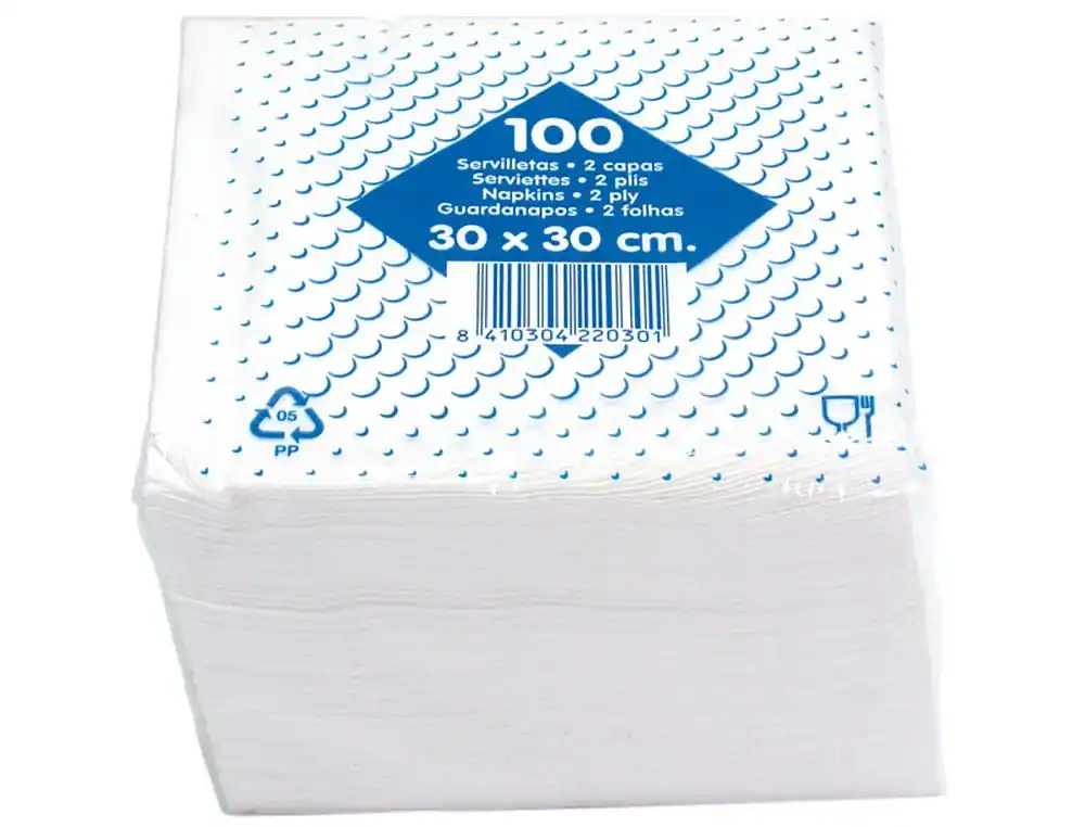 Servilleta blanca 2 capas 30×30 cm (100 unidades) Precio Reducido