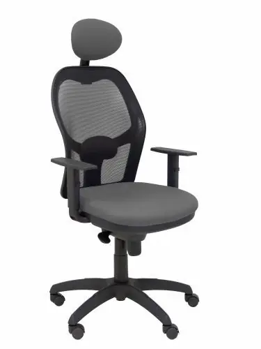 Silla Piqueras y Crespo Jorquera Brazos Regulables Cabecero Fijo Mecanismo Sincro con Regulador de Tension Respaldo de Malla Negra y Asiento Tapizado Bali Gris Oscuro Nueva Colección