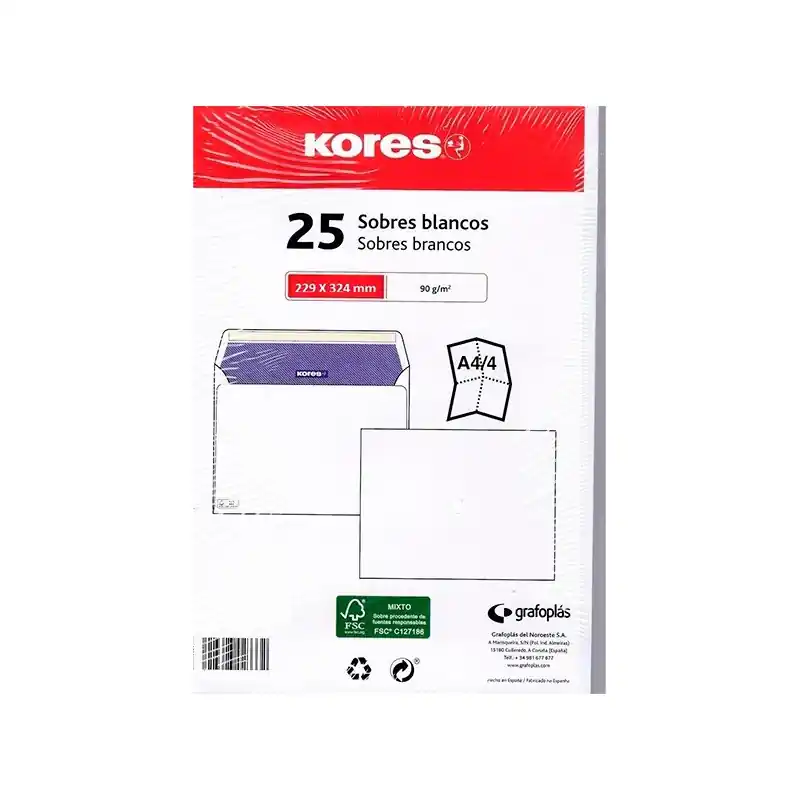 Sobre 229x324mm Blanco Basico 25Uds Exclusivo