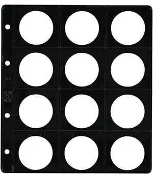 Fundas de plástico transparente con alma opaca negra. Una ranura en la parte superior permite introducir cada moneda en su alojamiento. Con cartulina separadora.