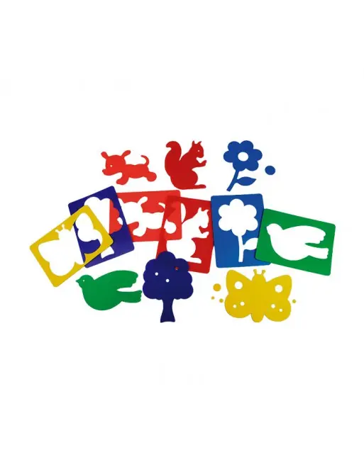 Set con 6 plantillas de polipropileno de 8 mm de grosor. Valen por 12 utilizando contorno internos y externos. Todo un maletín transparente para guardarlos fácilmente. Se lavan fácilmente después de ser utilizados con pinturas al agua, tampografías y aerografías.